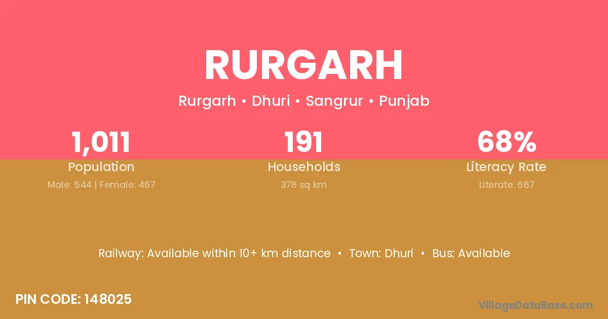 Dhuri is the nearest town to Rurgarh village for major economic activities