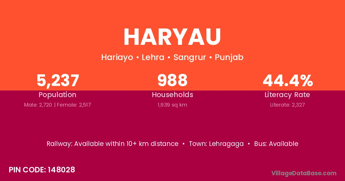 Lehragaga is the nearest town to Haryau village for major economic activities