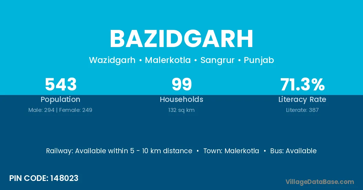 Malerkotla is the nearest town to Bazidgarh village for major economic activities