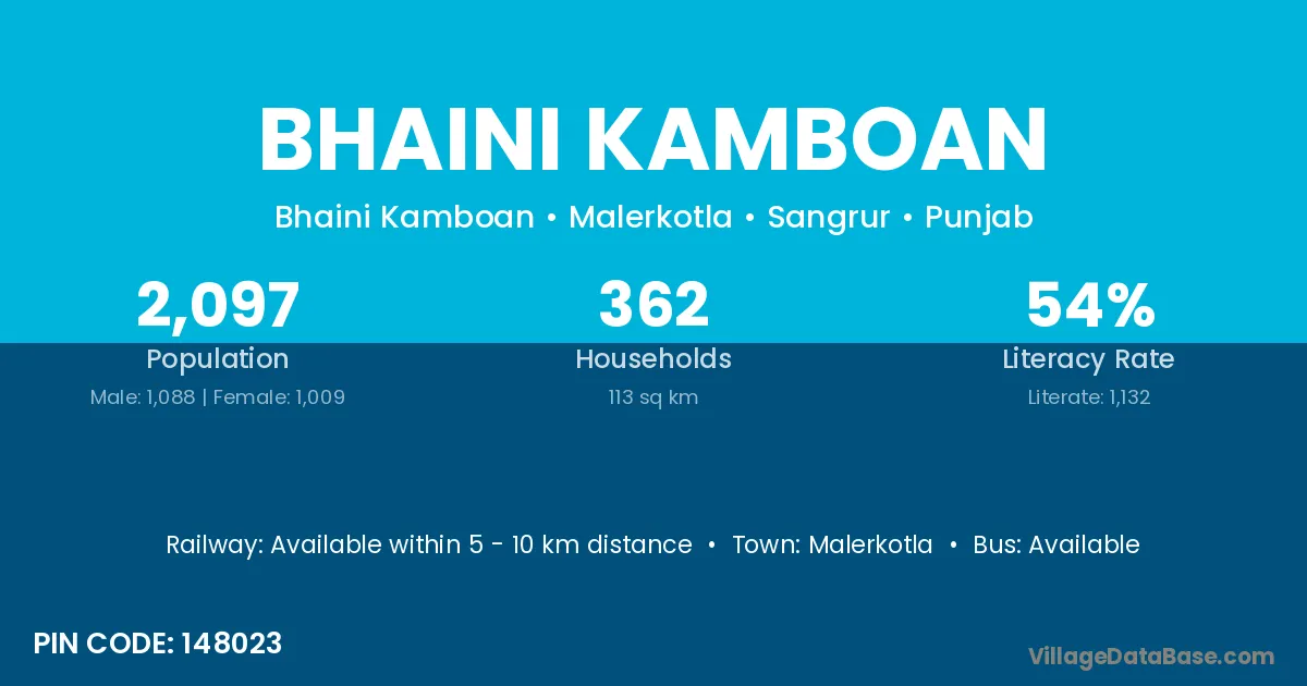 Malerkotla is the nearest town to Bhaini Kamboan village for major economic activities