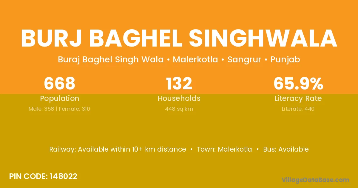 Malerkotla is the nearest town to Burj Baghel Singhwala village for major economic activities