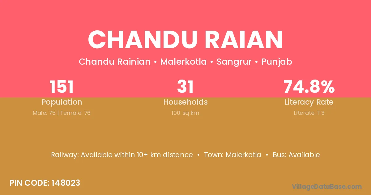 Malerkotla is the nearest town to Chandu Raian village for major economic activities