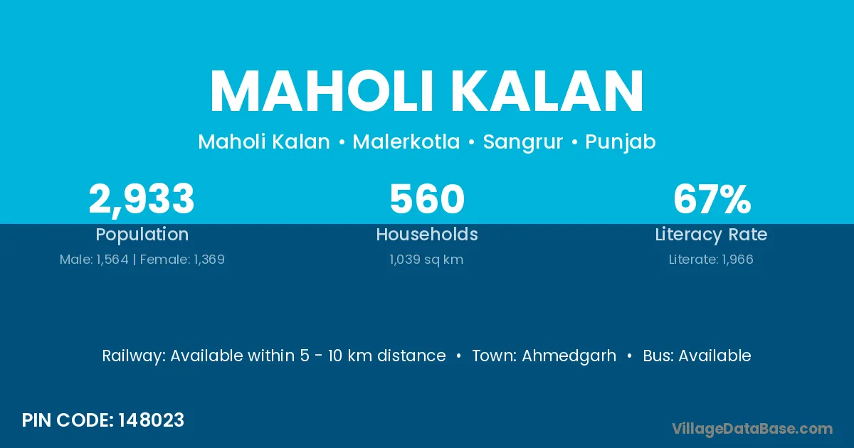 Ahmedgarh is the nearest town to Maholi Kalan village for major economic activities