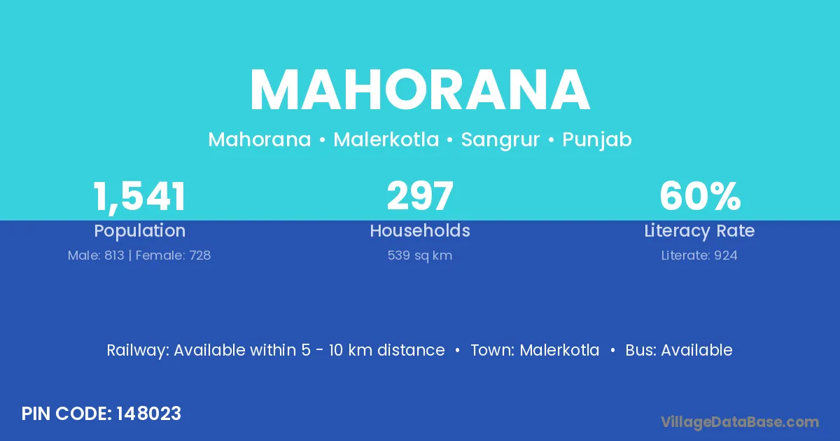 Malerkotla is the nearest town to Mahorana village for major economic activities