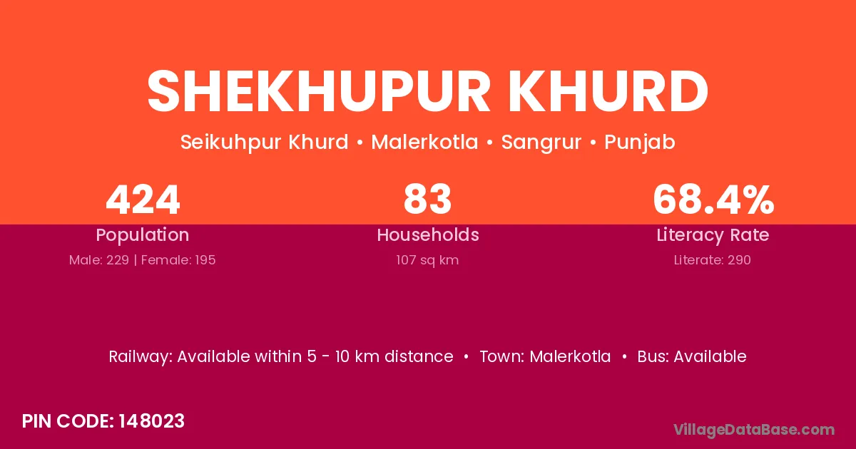 Shekhupur Khurd village has a total population of 424 people, of which 229 are males and 195 are females.