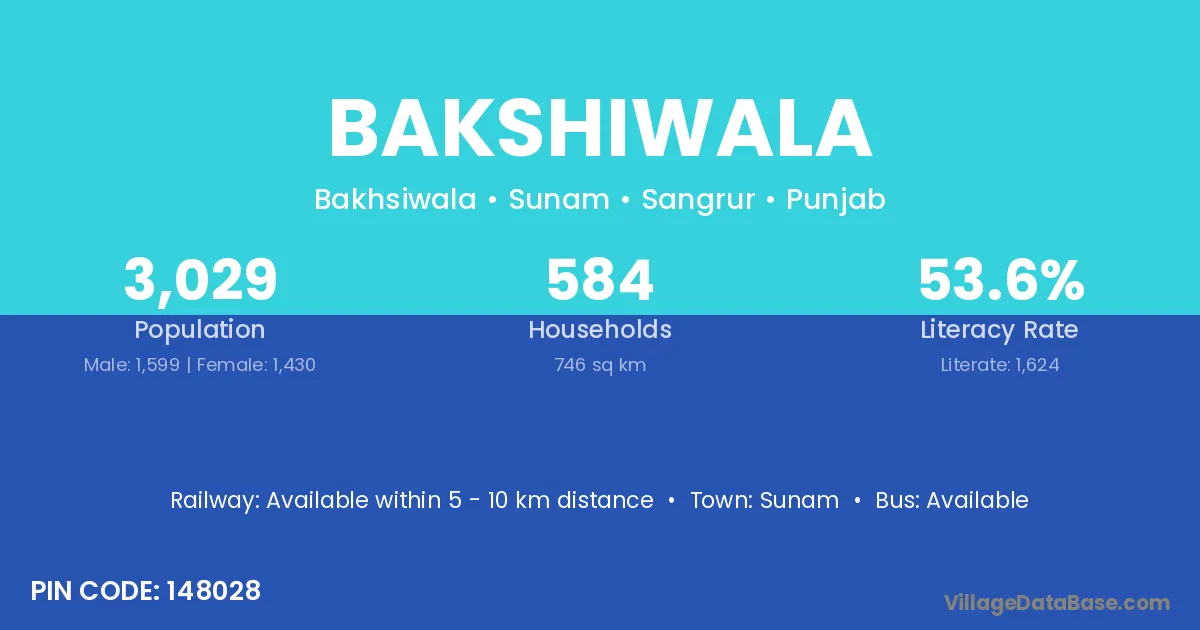 Sunam is the nearest town to Bakshiwala village for major economic activities