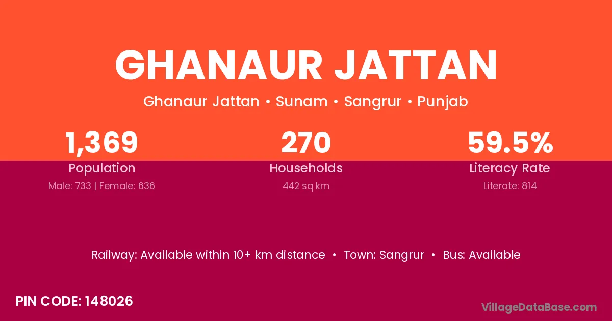 Ghanaur Jattan village has a total population of 1,369 people, of which 733 are males and 636 are females.