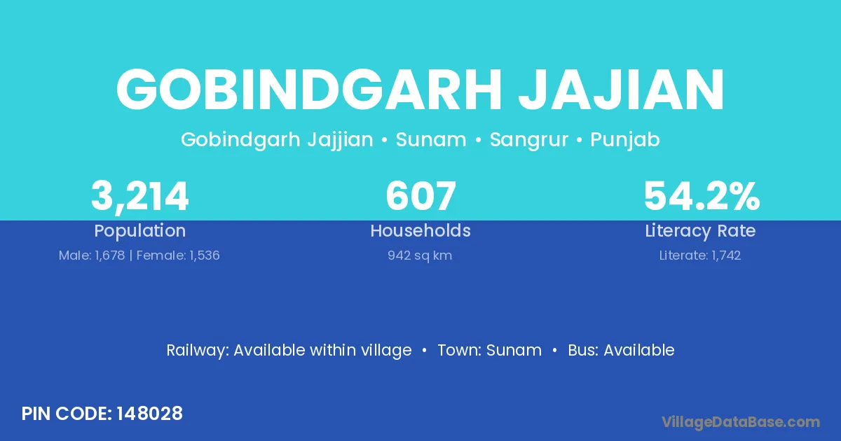 Sunam is the nearest town to Gobindgarh Jajian village for major economic activities