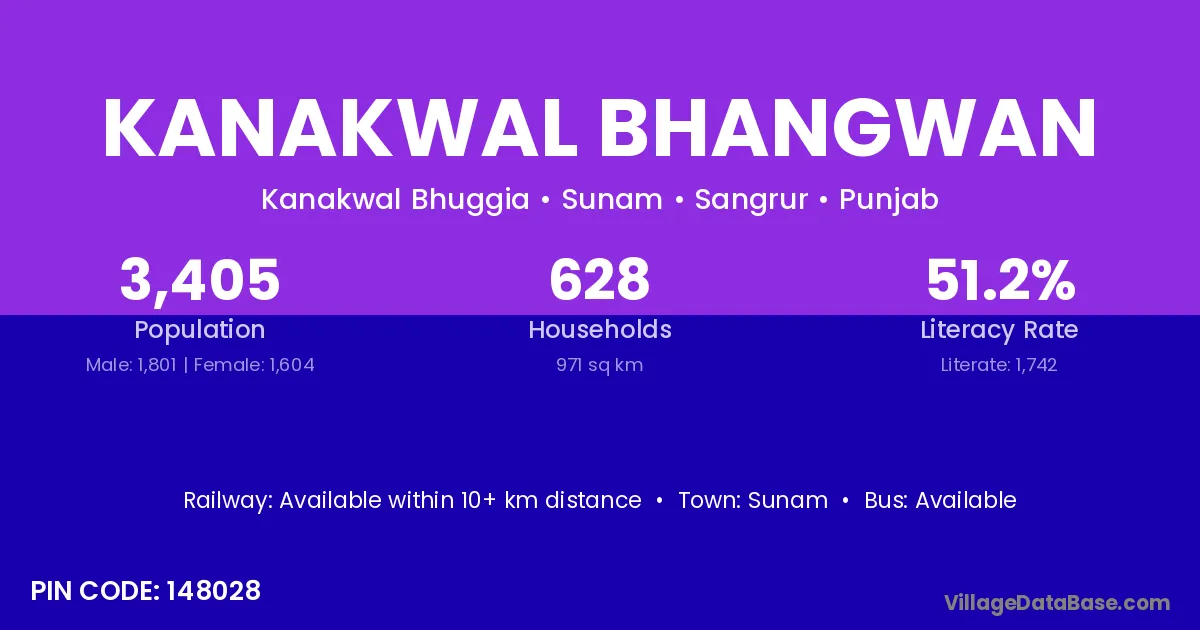 Sunam is the nearest town to Kanakwal Bhangwan village for major economic activities