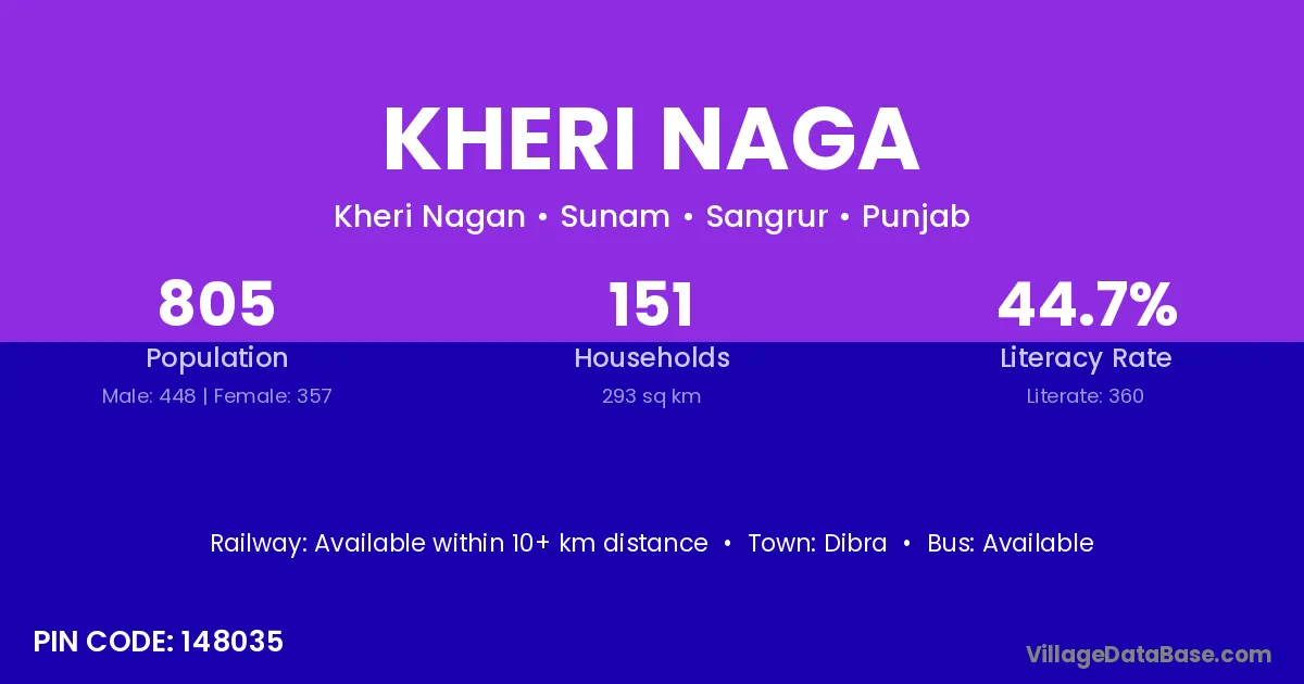 According to Census 2011 information, the village code of Kheri Naga village is 148035.