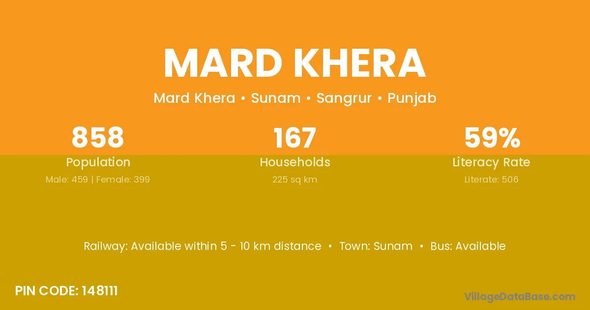 Sunam is the nearest town to Mard Khera village for major economic activities