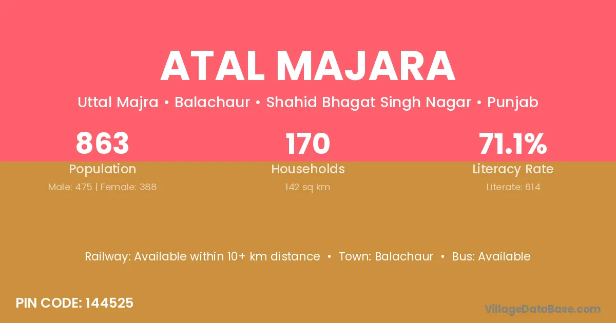 Atal Majara village has a total population of 863 people, of which 475 are males and 388 are females.