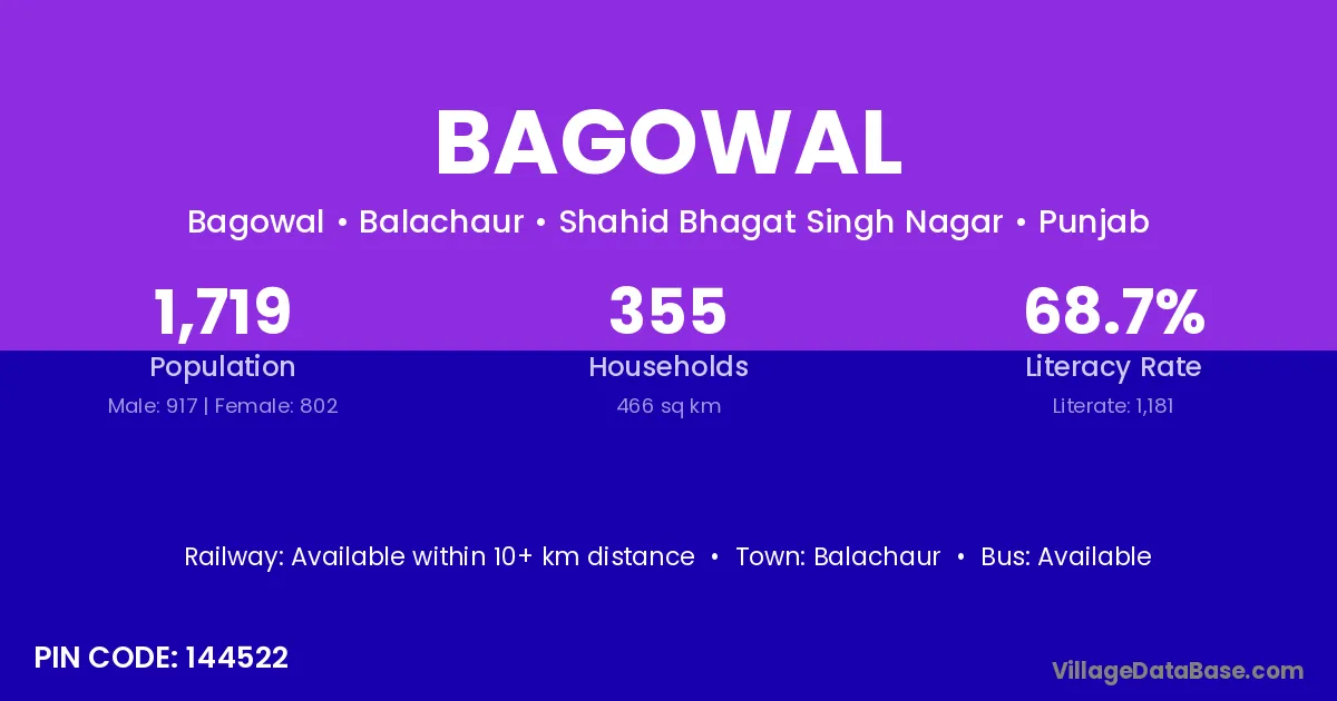 Balachaur is the nearest town to Bagowal village for major economic activities