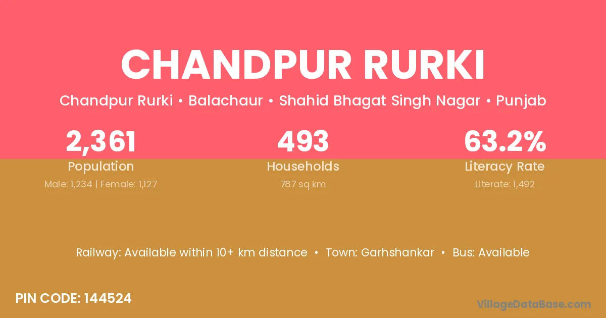 Garhshankar is the nearest town to Chandpur Rurki village for major economic activities