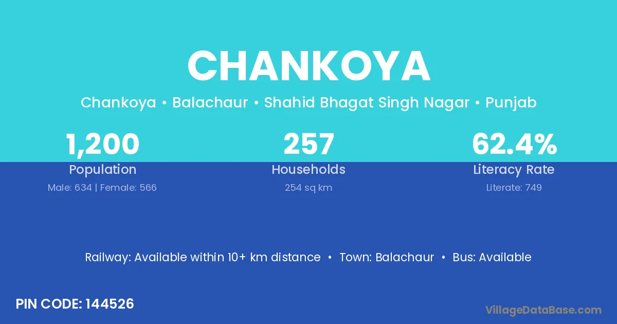 Balachaur is the nearest town to Chankoya village for major economic activities