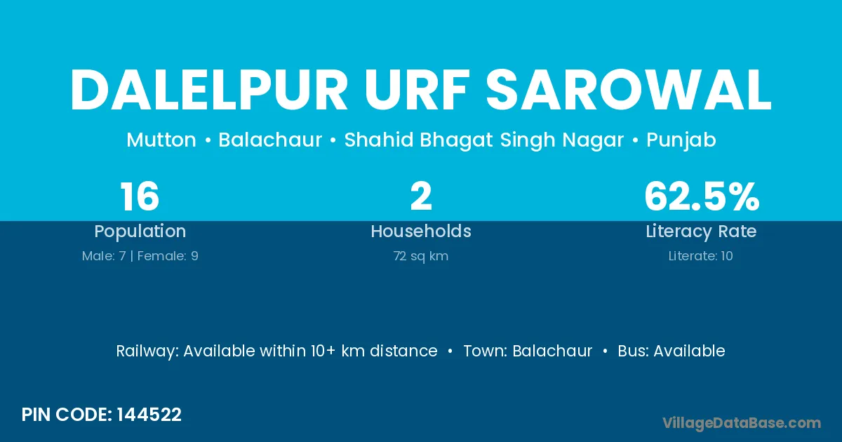 Dalelpur Urf Sarowal village has a total population of 16 people, of which 7 are males and 9 are females.
