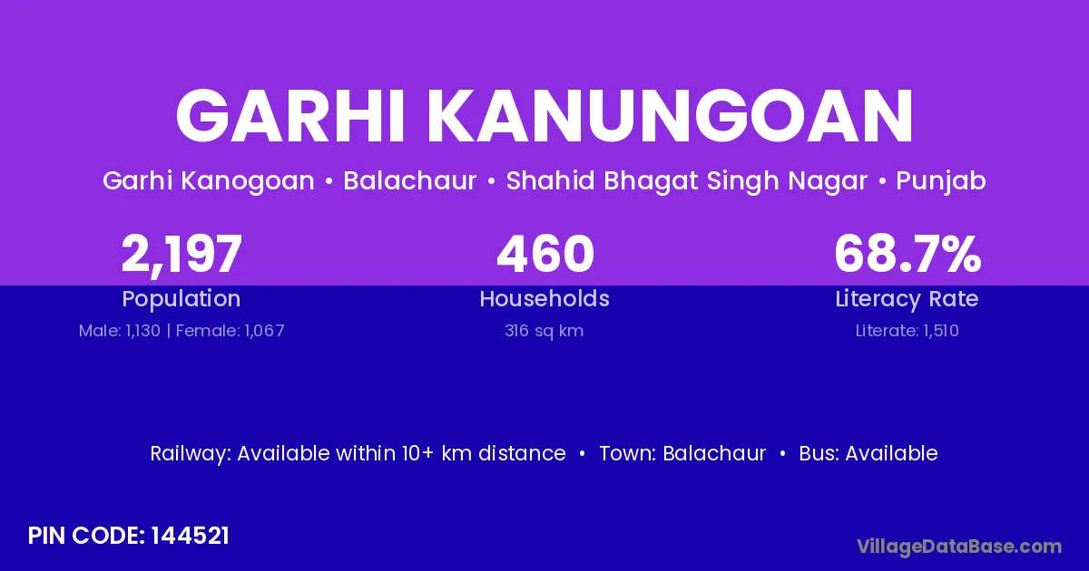 Balachaur is the nearest town to Garhi Kanungoan village for major economic activities