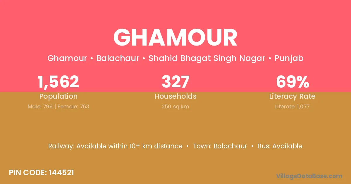 According to Census 2011 information, the village code of Ghamour village is 144521.