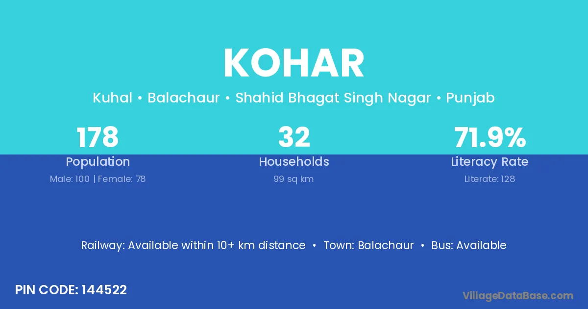 Balachaur is the nearest town to Kohar village for major economic activities