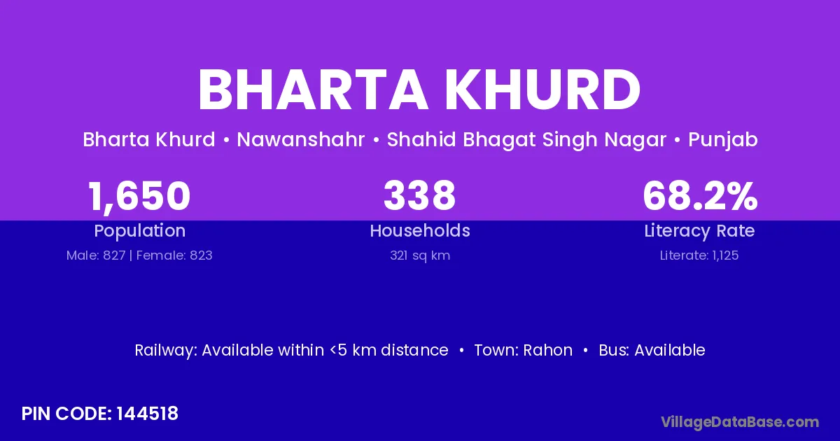 According to Census 2011 information, the village code of Bharta Khurd village is 144518.