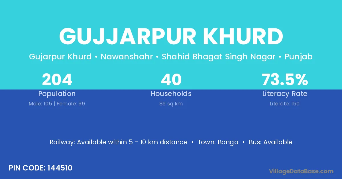 Banga is the nearest town to Gujjarpur Khurd village for major economic activities