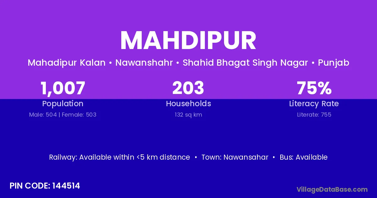 Nawansahar is the nearest town to Mahdipur village for major economic activities