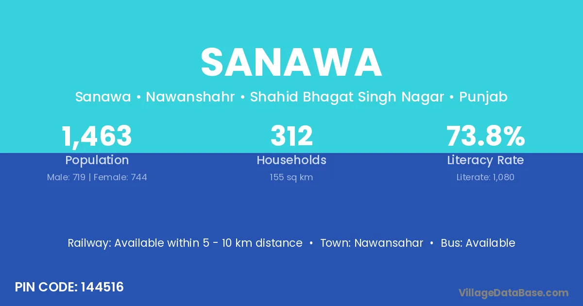 Nawansahar is the nearest town to Sanawa village for major economic activities