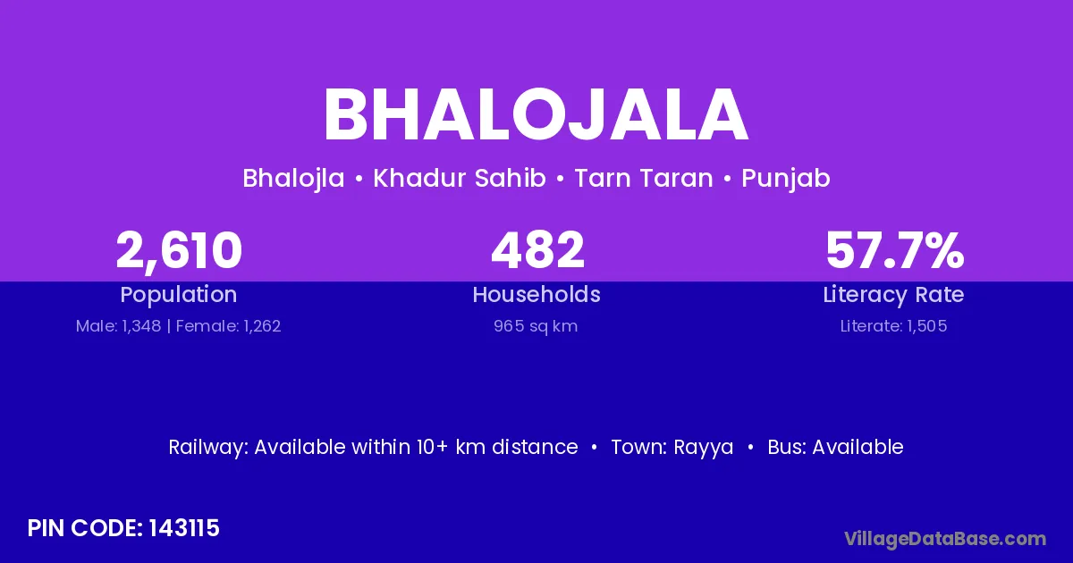 Bhalojala village is located in the Khadur Sahib Tehsil of the Tarn Taran district in Punjab .