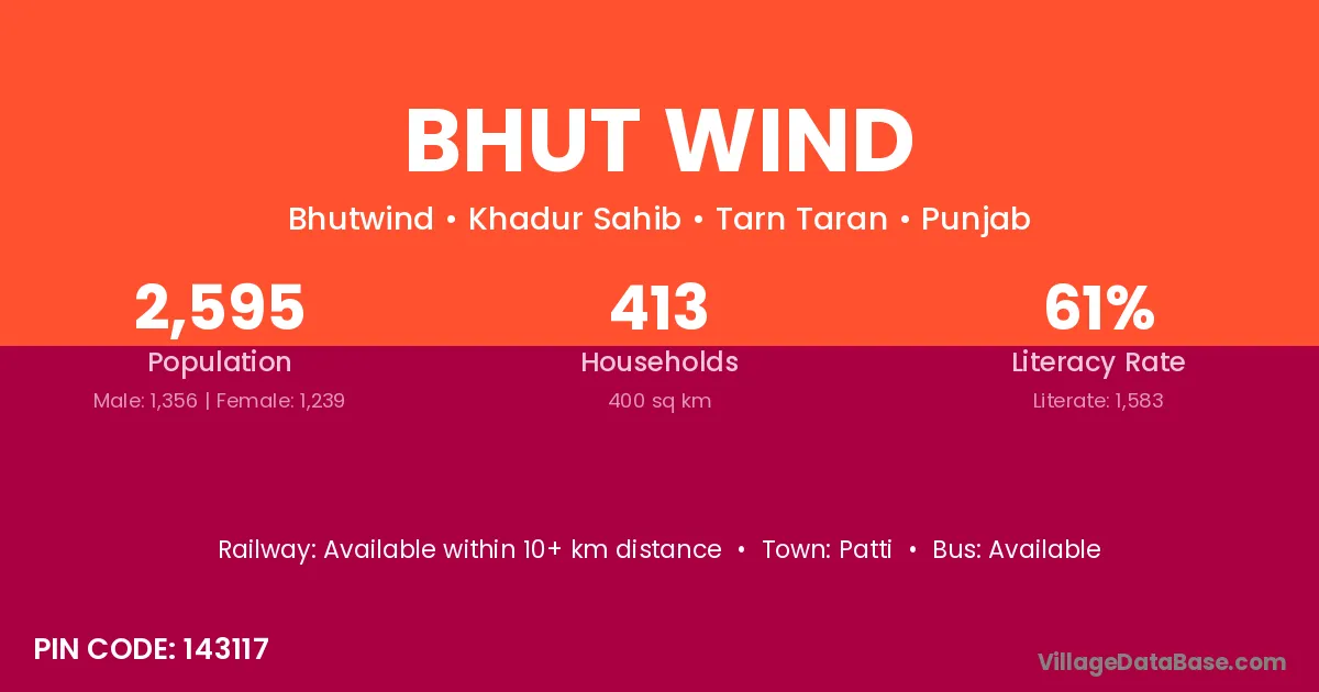Bhut Wind village has a total population of 2,595 people, of which 1,356 are males and 1,239 are females.