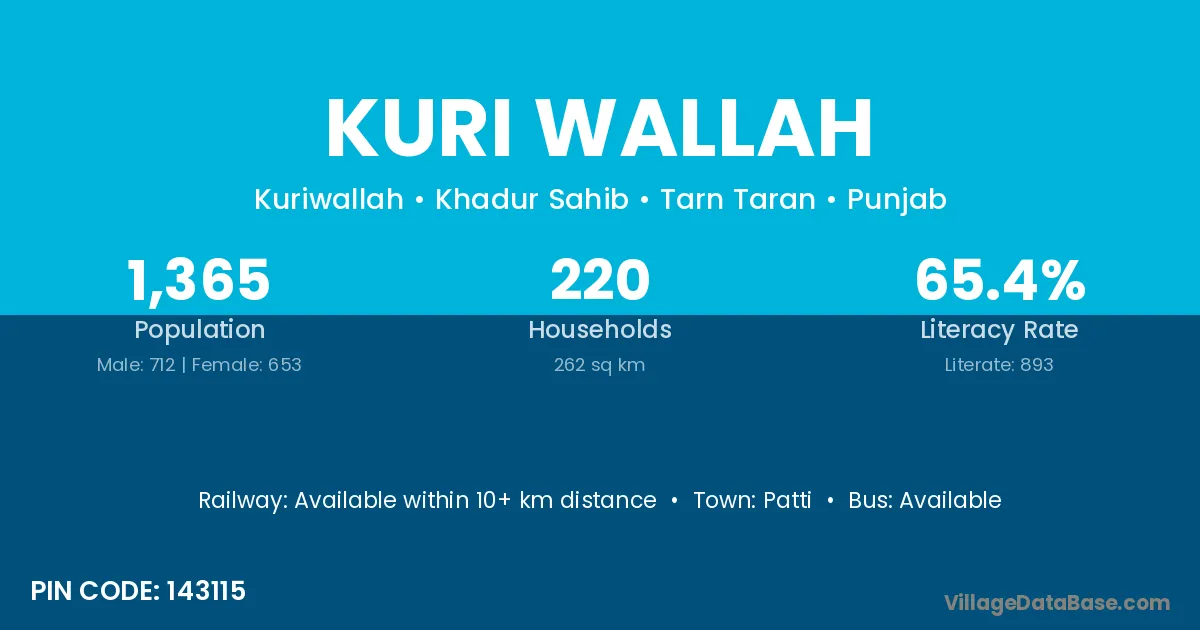Patti is the nearest town to Kuri Wallah village for major economic activities