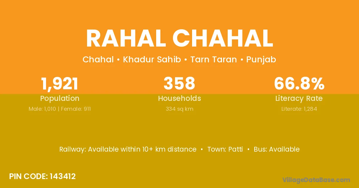 Patti is the nearest town to Rahal Chahal village for major economic activities