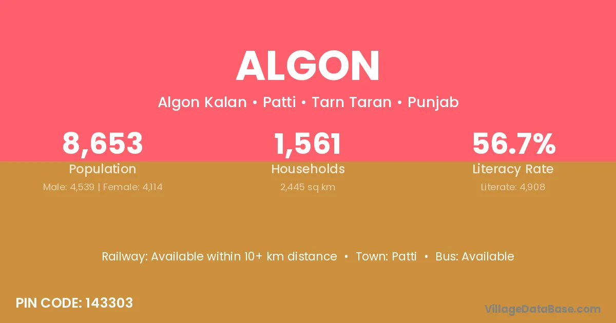 Patti is the nearest town to Algon village for major economic activities