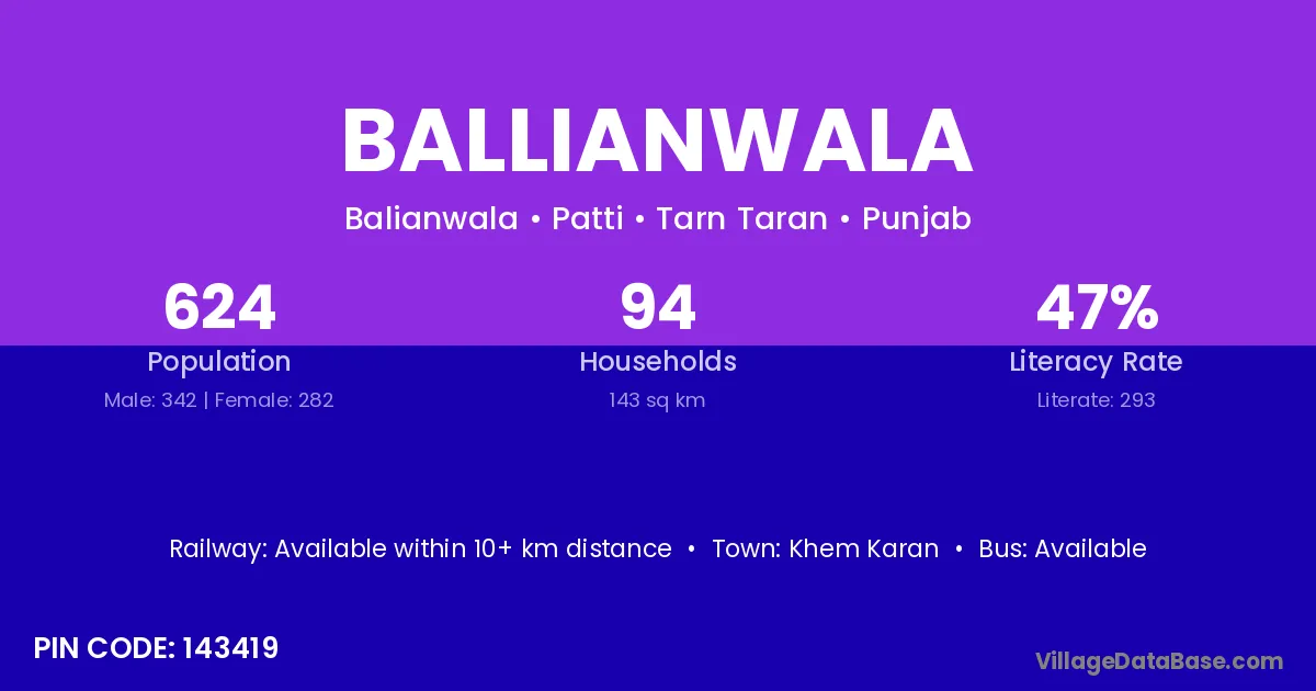 According to Census 2011 information, the village code of Ballianwala village is 143419.