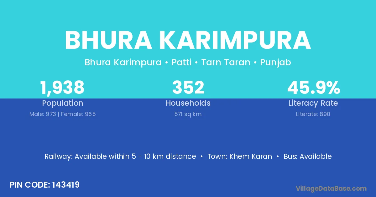 Khem Karan is the nearest town to Bhura Karimpura village for major economic activities