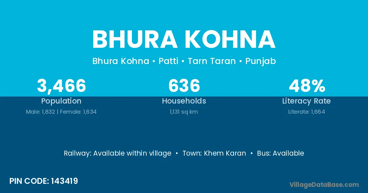 There are approximately 636 households in Bhura Kohna village.
