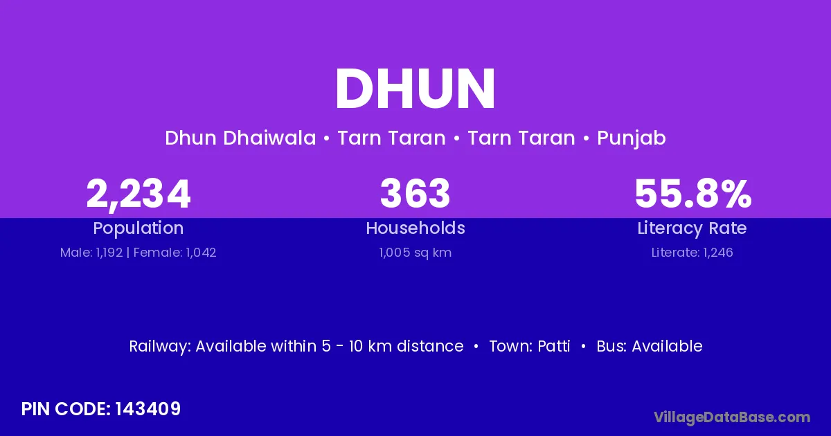Patti is the nearest town to Dhun village for major economic activities