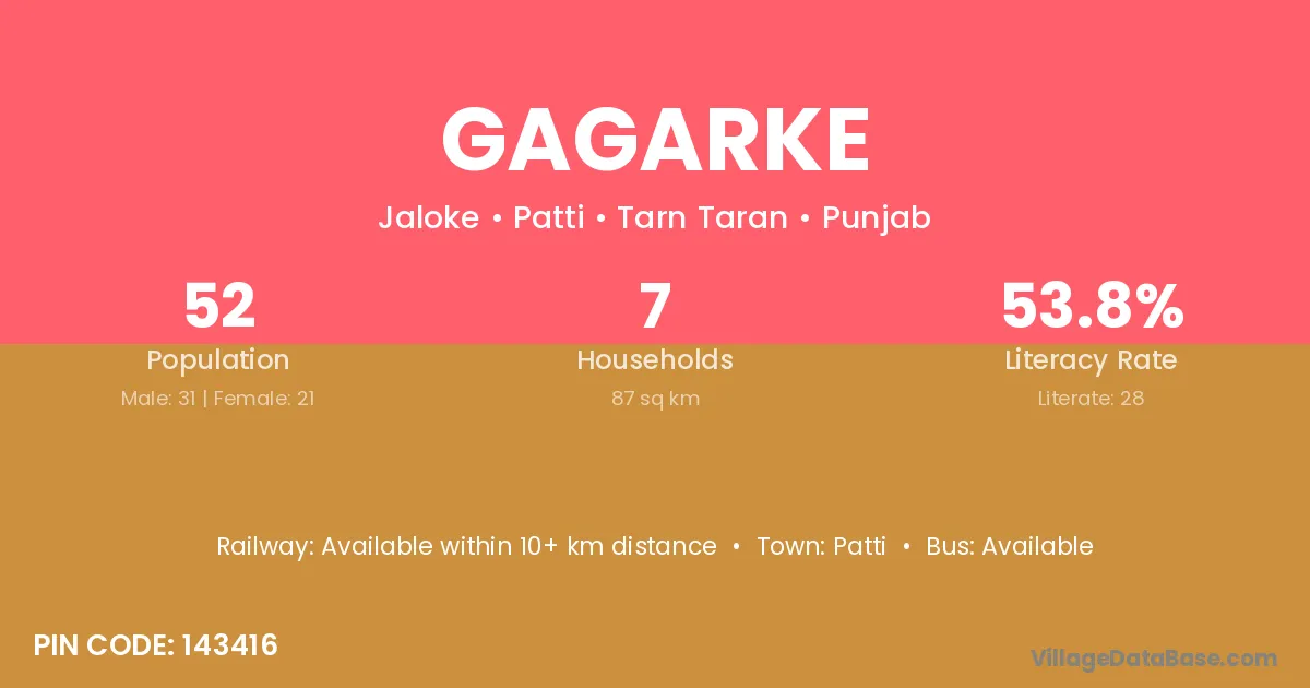 According to Census 2011 information, the village code of Gagarke village is 143416.