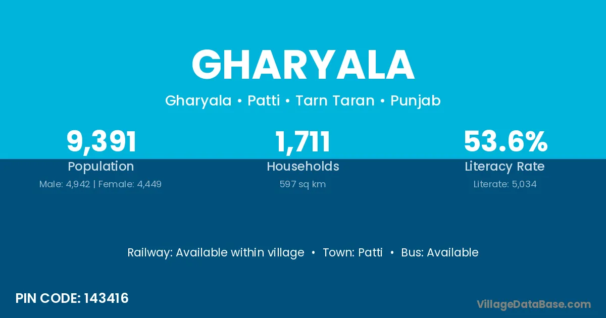 Patti is the nearest town to Gharyala village for major economic activities