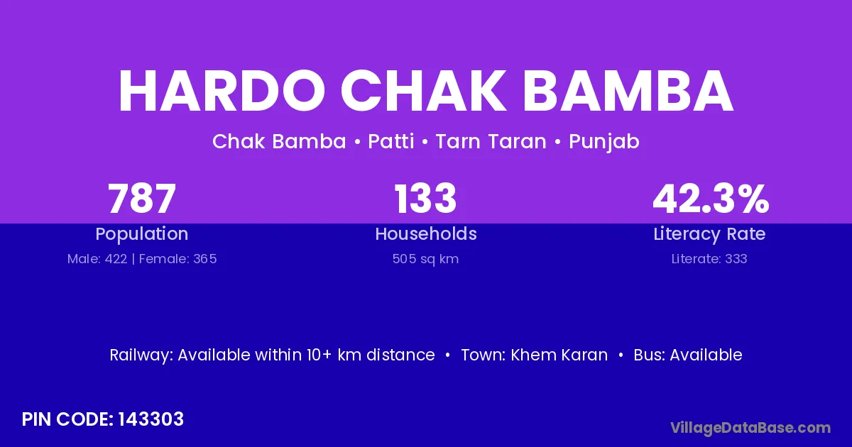 According to Census 2011 information, the village code of Hardo Chak Bamba village is 143303.