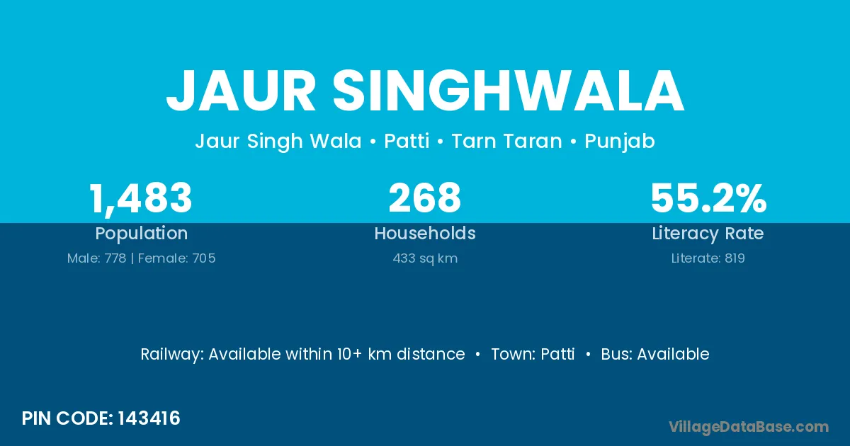 Patti is the nearest town to Jaur Singhwala village for major economic activities
