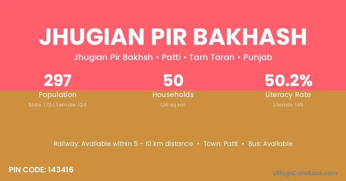 Patti is the nearest town to Jhugian Pir Bakhash village for major economic activities