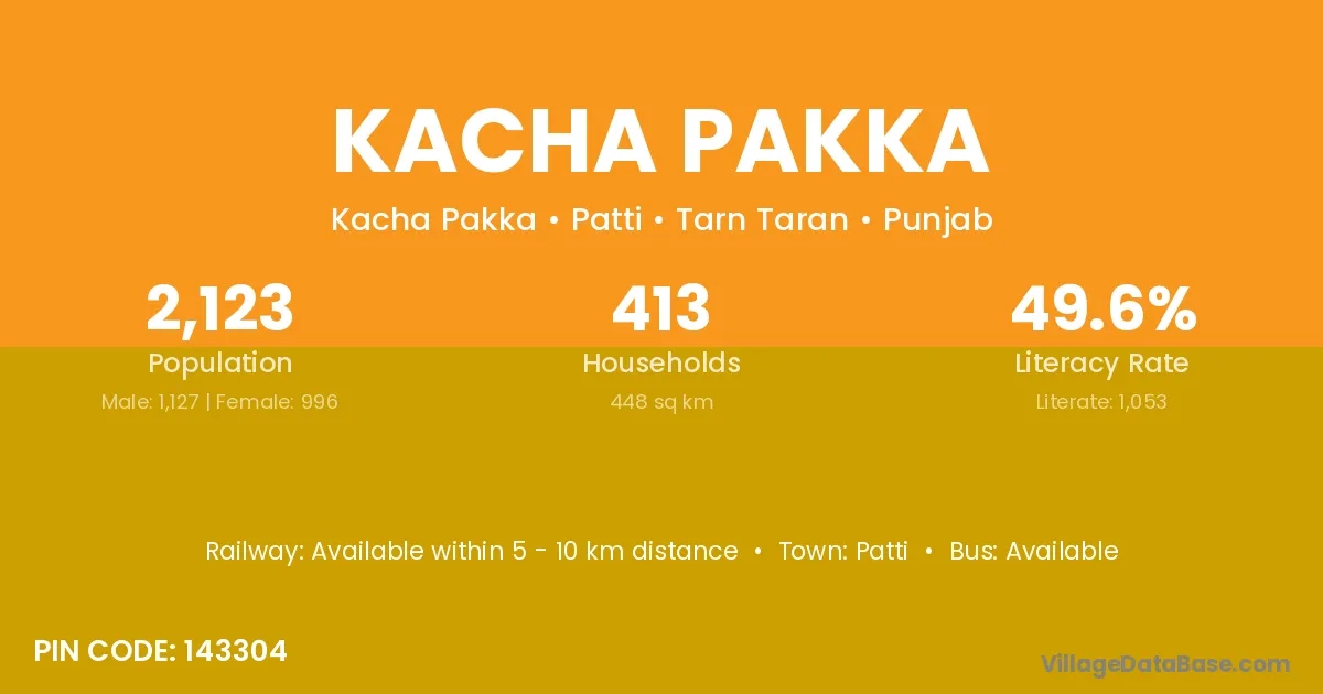 Patti is the nearest town to Kacha Pakka village for major economic activities
