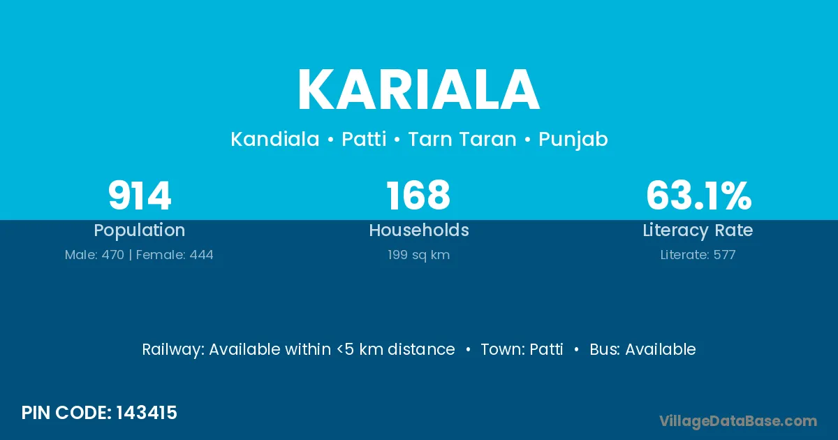 Kariala village is located in the Patti Tehsil of the Tarn Taran district in Punjab .