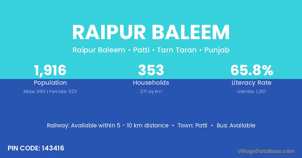 Patti is the nearest town to Raipur Baleem village for major economic activities