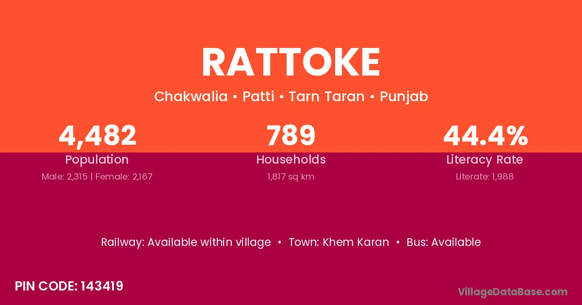 According to Census 2011 information, the village code of Rattoke village is 143419.