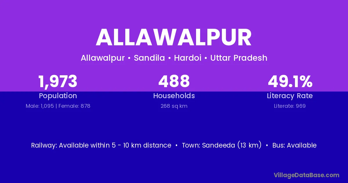 Allawalpur village has a total population of 499 people, of which 250 are males and 249 are females.