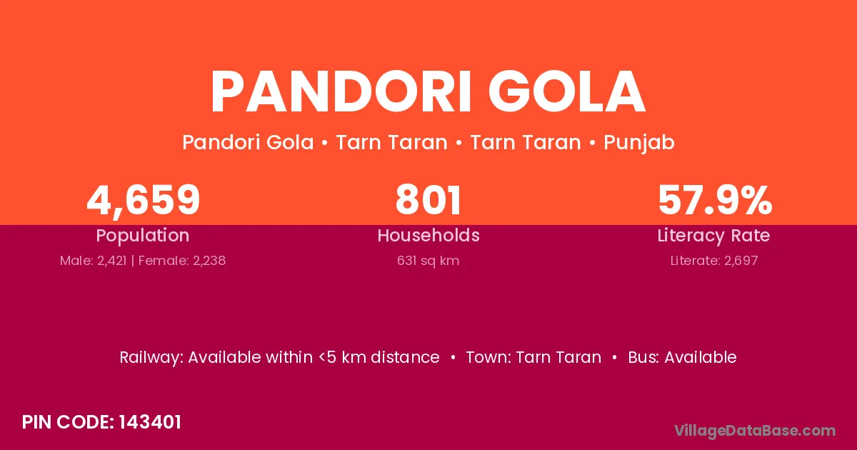 Tarn Taran is the nearest town to Pandori Gola village for major economic activities