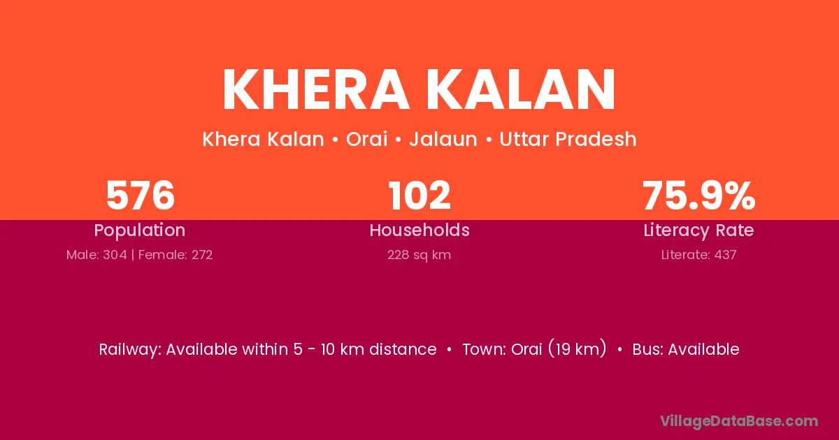 The literacy rate of Khera Kalan village is 58.43%. Male literacy stands at 72.70% and female literacy at 43.81%.