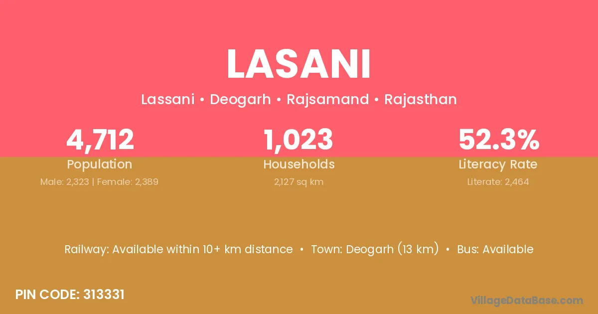 Beawar (30 km) is the nearest town to Lasani village for major economic activities and is located approximately 30 km away.