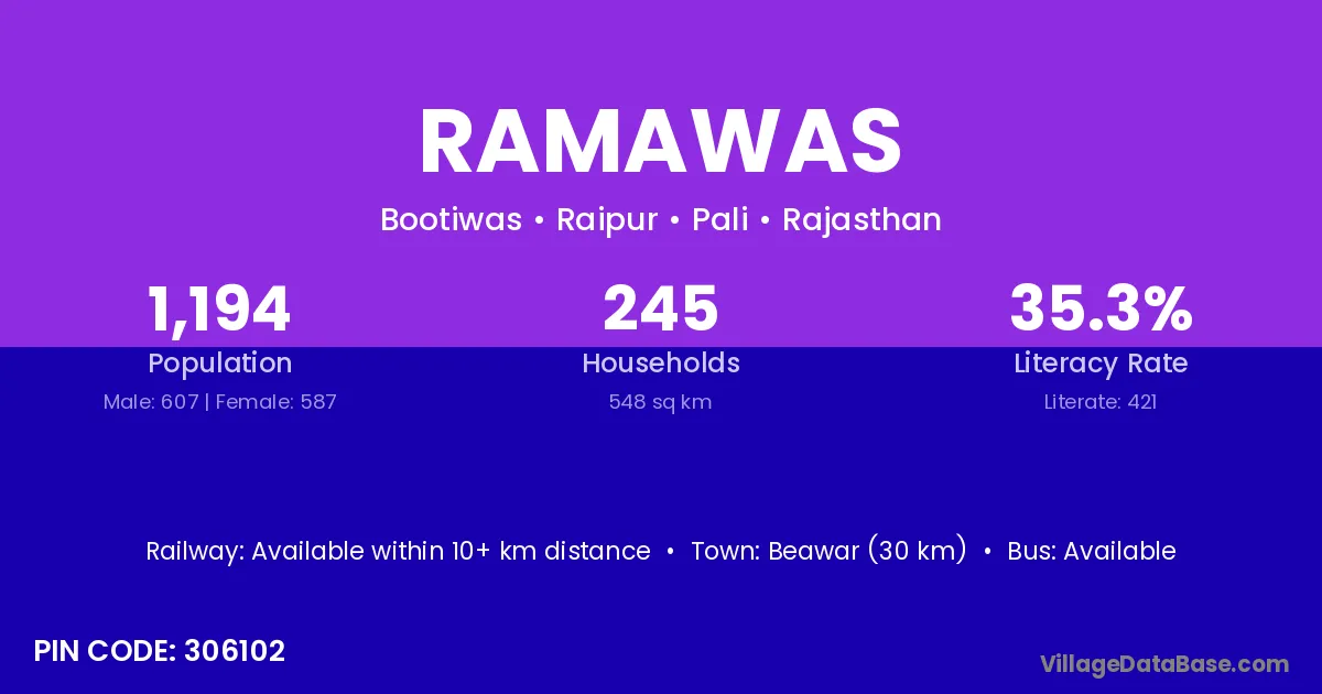 Beawar (9 km) is the nearest town to Ramawas village for major economic activities and is located approximately 9 km away.